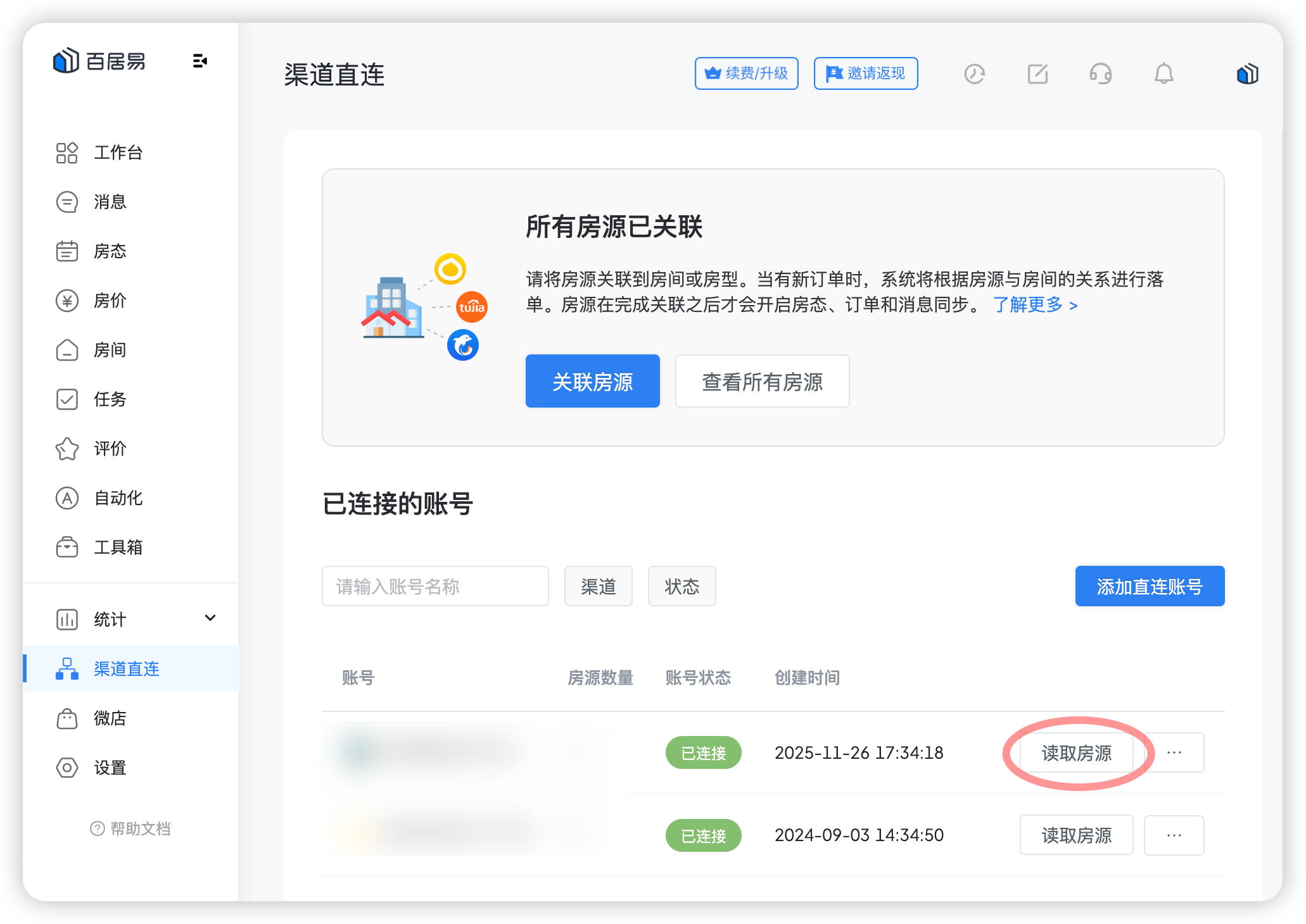 百居易将自动从该平台抓取最新的房源详情、日历状态以及价格信息。